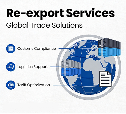 Re-export services are the processes by which previously imported goods are exported to another country without being consumed locally, for commercial or logistical reasons. Re-export is an important option for companies dealing with multiple markets that need flexible management of cross-border goods movement.